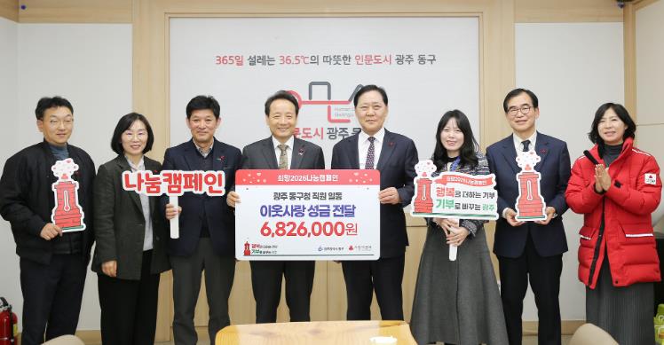 | ▲ 광주광역시동구 ‘희망 2026 나눔캠페인’ 직원 성금 전달 |
