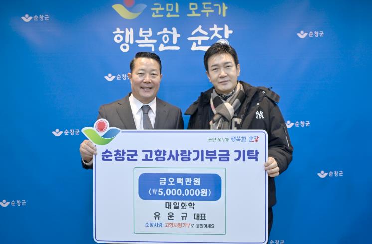 | ▲ 대일화학 유운규 대표, 순창군에 고향사랑기부금 500만원 기탁 |