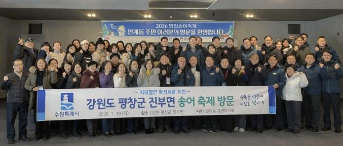 [무한뉴스=양현명 기자] 수원시 팔달구 인계동은 지난 29일, 인계동 주민자치회 등 단체원 40여 명과 함께 자매결연지 평창군 진부면에 방문, 평창송어축제에 참여하여 선진적인 축제 운영 사례를 견학하고 자매결연지 간의 교류 활성화에 나섰다고 밝혔다.