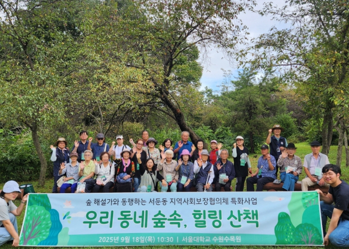 [무한뉴스=양현명 기자] 수원시 권선구 서둔동 지역사회보장협의체는 지난 18일, 관내 어르신 20명을 모시고 서울대농대 수원수목원에서‘우리 동네 숲속, 힐링 산책’숲 체험 나들이를 진행했다.