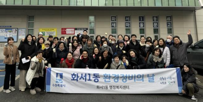 [무한뉴스=양현명 기자] 수원시 팔달구 화서1동은 지난 15일, 통장협의회 등 단체원 및 주민들과 함께 2026년 설맞이 관내 환경정비를 실시했다고 밝혔다.