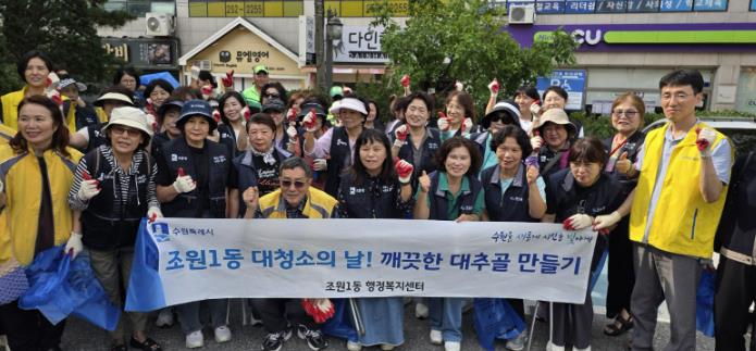 [무한뉴스=양현명 기자] 수원시 장안구 조원1동은 추석과 APEC을 맞아 추진 중인 국민 참여 운동인 「대한민국 새단장」 캠페인의 일환으로 추석맞이 대청소를 실시했다.