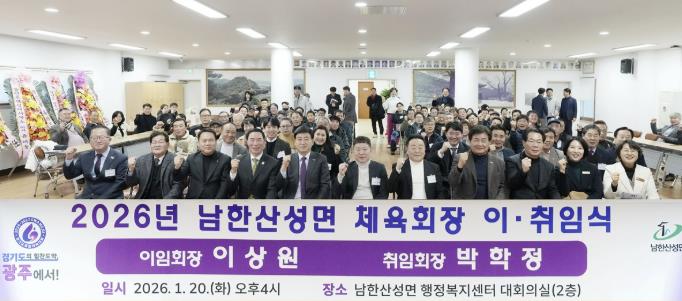 [무한뉴스=정승훈 기자] 광주시 남한산성면 체육회는 지난 20일 남한산성면 행정복지센터에서 ‘2026년 남한산성면 체육회장 이·취임식’을 개최했다.