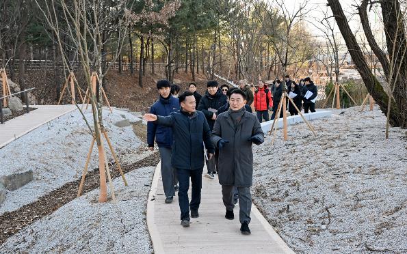 [무한뉴스=정승훈 기자] 의정부시는 2026년 병오년 새해를 맞아 1월 8일 녹지 인프라 확충을 위한 주요 사업 대상지를 현장 점검했다. 점검 대상지는 ▲장암동 실외정원 ▲용현산업단지 완충녹지 산책로 및 가로숲길 조성 사업지 ▲민락동 감성쉼터 등이다. 이번 점검은 도심 속 쉼터와 실외정원 확충, 안전한 보행환경 조성, 산림 명소 발굴 등 녹지 인프라 조성 사업의 추진 현황을 점검하고, 시민들이 일상에서 녹지 공간을 보다 쉽게 이용할 수 있도록 추진 중인 ‘도시숲 프로젝트’의 사업 방향과 현장 여건을 확인하기 위해 진행됐다.