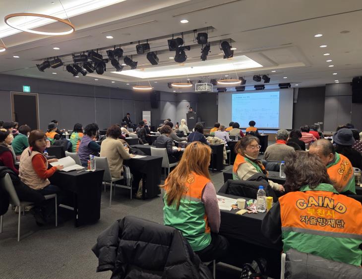 [무한뉴스=정승훈 기자] 부천시는 지난 22일 인천 중구에 소재한 더위크앤리조트에서 자율방재단원 50명을 대상으로 ‘2025년 부천시 자율방재단 재해구호 전문교육’을 진행했다.