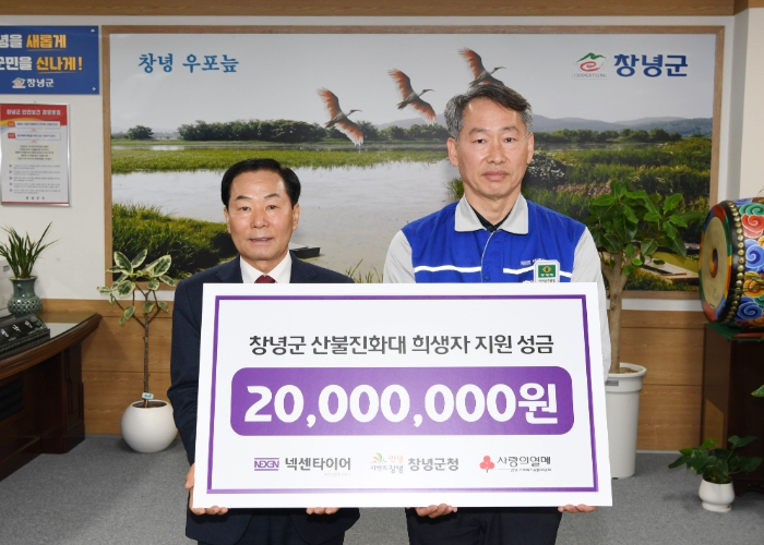 [무한뉴스=최진수 기자] 창녕군은 지난 2일 넥센타이어 창녕공장에서 창녕군 산불진화대 희생자 지원을 위한 성금 2,000만 원을 기탁했다고 밝혔다.