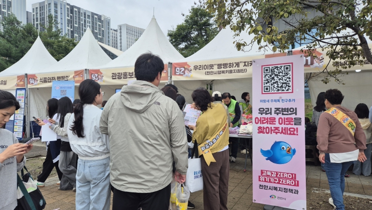 [무한뉴스=정민정 기자] 천안시는 지난 18~19일 이틀간 천안종합운동장에서 열린 ‘2025 빵빵데이 천안’ 축제 현장에서 숨은 위기가구 발굴을 위한 ‘우리이웃, 빵빵하게 지켜요’ 행복키움지원단 홍보부스를 운영했다.