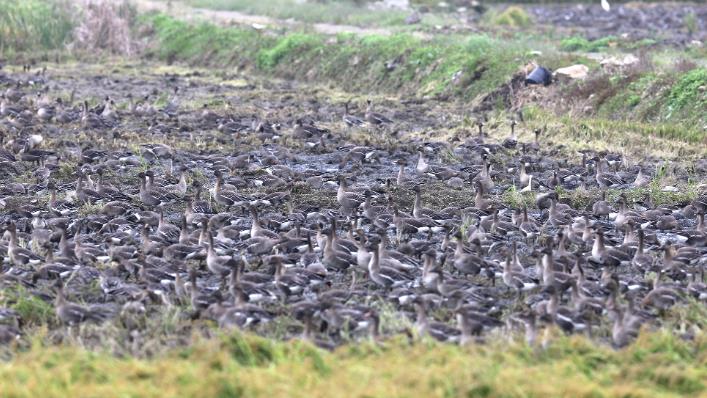 ▲ 천수만을 찾은 겨울 철새 모습(기러기류, 지난 10월 12일 촬영) |