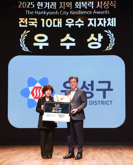 [무한뉴스=정민정 기자] 대전 유성구가 지난 23일 서울 중구 대한상공회의소 국제회의장에서 열린 '2025 한겨레 지역 회복력 평가' 시상식에서 전국 10대 우수 지방자치단체에 선정됐다.