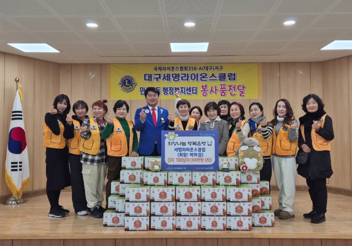 안기영 만촌1동장은 “수년간 변함없이 후원을 이어오고 있는 세명라이온스클럽에 깊이 감사드린다”며 “전해주신 물품은 도움이 꼭 필요한 이웃들에게 소중히 전달하겠다”고 전했다.
