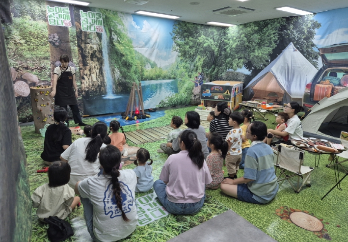 ‘팝업놀이터’는 농촌지역 특성상 문화‧놀이 활동에 제약이 있는 영유아들을 위해 기획된 프로그램으로, 당일 하루만 운영되는 특별한 놀이 공간이다. 행사장은 ‘영아 놀이터’, ‘유아 놀이터’로 구분돼 연령별 발달 특성에 맞춘 체험 활동이 펼쳐졌다.와글와글 동물농장, 한양저잣거리, 차박체험 등을 주제로 다채로운 활동이 아이들과 학부모들에게 큰 호응을 얻었다.