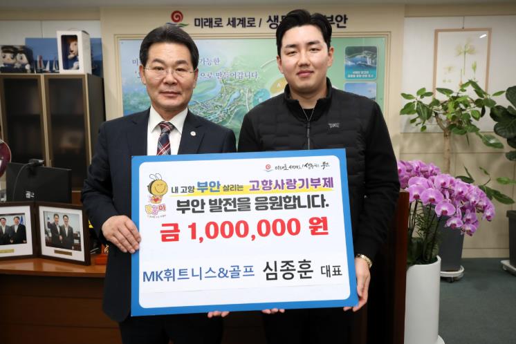 | ▲ 심종훈 MK휘트니스&골프 대표, 부안군 고향사랑기부금 100만원 기탁 |