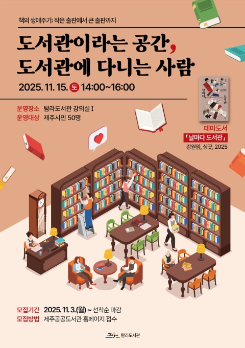 프로그램 참여를 원하는 시민은 11월 3일부터 제주특별자치도 공공도서관 누리집을 통해 접수할 수 있다.