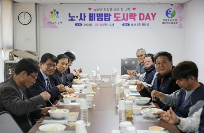 [무한뉴스=손성기 기자] 의왕도시공사는 12월 4일 노사 간 협력과 소통을 강화하고 건강한 조직문화 확산을 위한 ‘노·사 비빔밥 도시락데이’ 행사를 개최했다고 밝혔다.