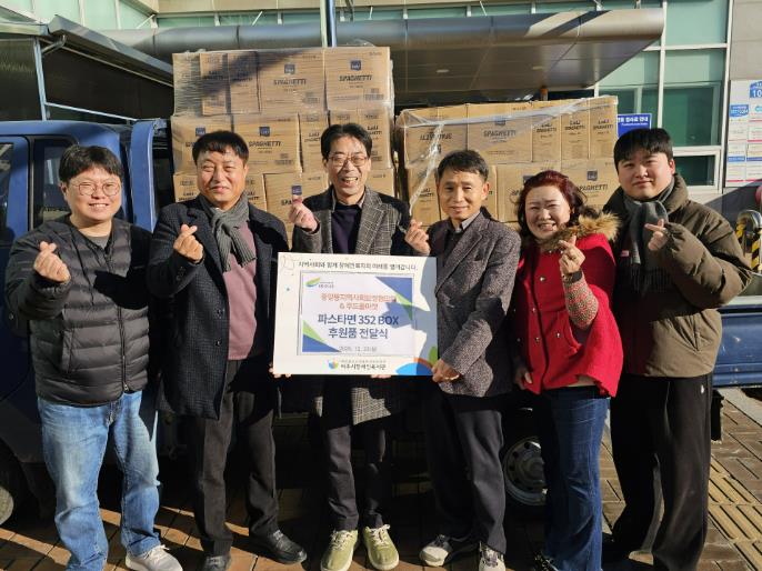 [무한뉴스=정충근 기자] 중앙동지역사회보장협의체는 지난 22일, 푸드올마켓과 함께 파스타면 352박스를 여주시장애인복지관에 기탁하며 지역사회 나눔 실천에 앞장섰다.