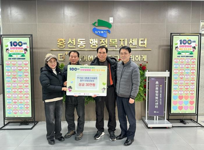 | ▲ 의정부시 흥선동, 브라운스톤흥선아파트 입주자대표회의 성금 30만 원 전달 |