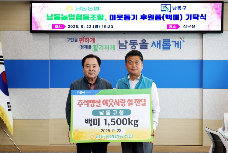 [무한뉴스=정승훈 기자] 인천시 남동구는 남동농업협동조합(조합장 한윤우)로부터 취약계층을 위한 추석맞이 백미 1,500kg(450만 원 상당)을 기탁받았다고 24일 밝혔다.