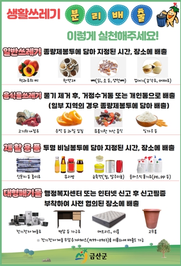 자세한 수거일은 금산군청 환경위생과나 읍·면행정복지센터에 문의하면 된다.