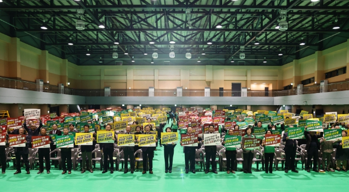 [무한뉴스=최진수 기자] 지난 12일 합천군 새마을지회에서는 합천다목적체육관에서 새마을 지도자대회를 개최하여 임원들과 각 읍·면 새마을지도자 및 부녀회원 등 650여 명이 참석한 가운데 한마음으로 오도산 양수발전소 유치를 적극 지지했다.