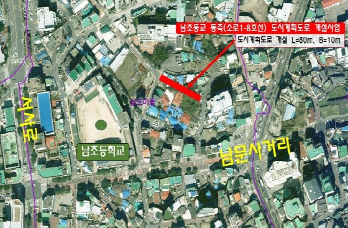 | ▲ 남초등학교 동측(소로1-8호선) 도시계획도로 개설사업 위치도 |