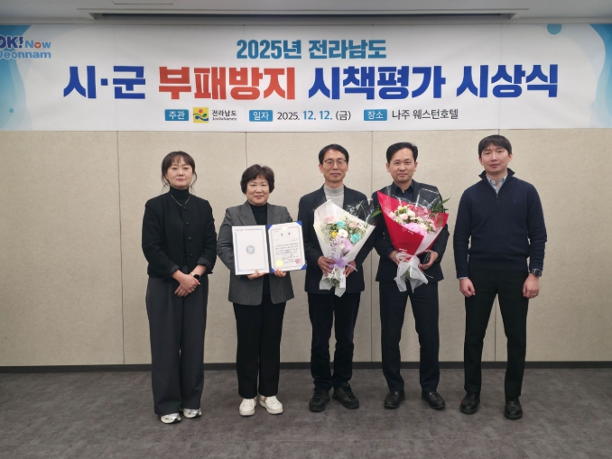 [무한뉴스=정민정 기자] 목포시는 지난 12일 전라남도가 주최한 ‘2025년 시·군 부패방지 시책평가’에서 우수상을 수상했다. 지난해 장려상에 이어 한 단계 상승한 성과로, 2년 연속 우수기관으로 선정됐다.