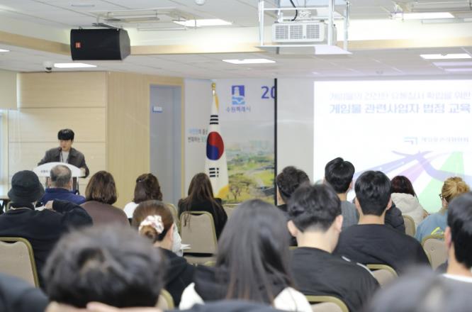 [무한뉴스=양현명 기자] 수원시 팔달구는 지난 18~19일, 팔달구청 대회의실에서 노래연습장 및 게임제공업 대표자 80여 명을 대상으로 2025년 유통관련업소 대표자 교육을 실시했다.