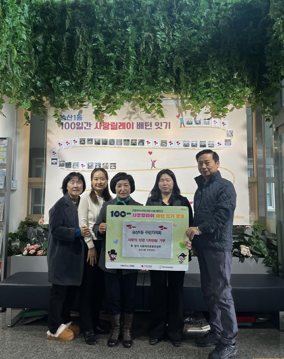 [무한뉴스=정승훈 기자] 의정부시 송산1동주민센터는 12월 11일 송산1동 주민자치회가 성금 120만 원을 기탁하며 ‘100일간 사랑릴레이 배턴 잇기’에 동참했다고 밝혔다.