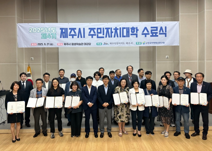 현원돈 제주시 부시장은 “이번 교육과정을 통해 습득한 지식과 경험이 지역사회 발전에 적극적으로 활용되길 바란다”며, “특히, 제주형 주민자치회 출범 등 주민자치의 새로운 방향을 모색하고 있는 시기에 여러분의 활동이 풀뿌리 민주주의 정착과 주민 주도 자치문화 확산에 큰 힘이 될 것이라 기대한다”고 전했다.