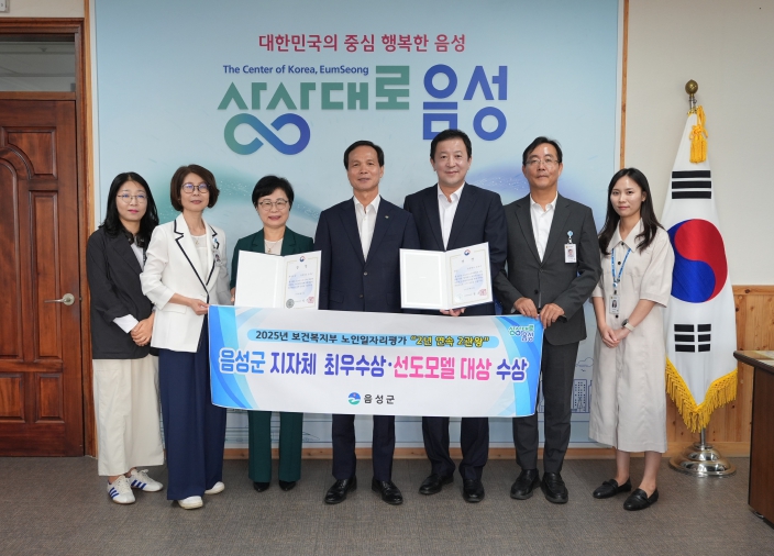 군에 따르면, 지난 22일 서울 중구 웨스틴 조선 서울 호텔에서 열린 시상식에서 음성군은 올해 노인일자리 우수 지자체 부문에서 ‘최우수’, 노인일자리 선도모델 우수 협력 기관 부문에서 ‘대상’을 수상했다.