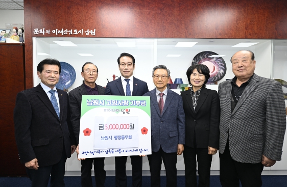 남원시장은 “공직 선배님들의 정성이 담긴 기부금이 남원시 지역발전과 시민 복리증진에 큰 도움이 될 것이다. 앞으로도 풍부한 행정 경력을 살려 남원시 발전에 앞장서 주시길 부탁드리며, 행정동우회의 활동을 적극 응원하겠다”고 전했다.