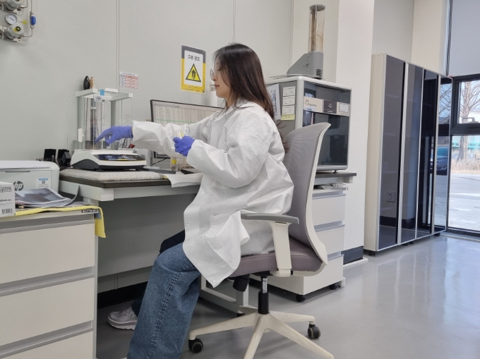 | ▲ 농산물안전분석센터 토양검정 담당자가 토양 유기물을 분석하고 있는 모습 |