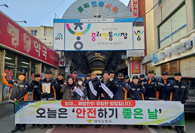 [무한뉴스=정민정 기자] 대전소방본부(본부장 김문용)는 14일 겨울철 전통시장 화재를 예방하고 안전한 시장 환경을 조성하기 위해, 관내 5개 소방서와 함께 전통시장 화재예방 캠페인을 실시하는 등 안전관리 강화에 나섰다.