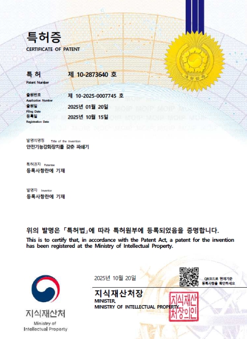 해당 장치는 지난해 12월까지 세 차례의 보완 개발을 거쳐 완성됐으며, 올해 37회에 걸친 현장 실증 시험을 통해 안전기능 오류 여부와 성능을 검증했다.