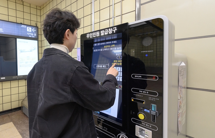 | ▲ 양천구 신정역에 새로 설치된 무인민원발급기에서 제증명서를 발급 중인 구민 |