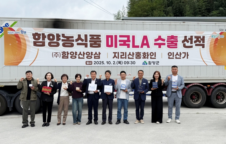 [무한뉴스=최진수 기자] 함양군은 2일 안의면에서 김윤택 함양군의회 의장을 비롯해 수출 관계자 15명이 참석한 가운데 ‘함양 농식품 미국 LA 수출 선적식’을 개최했다.