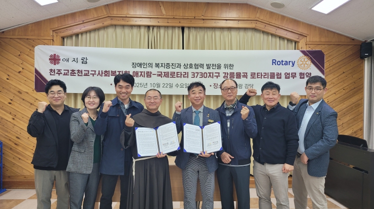 [무한뉴스=정민정 기자] ‘강릉장애인자립통합지원센터’와 ‘국제로타리 3730지구 강릉율곡 로타리클럽’(회장 이용기)은 지난 22일(수) 장애인의 복지증진을 위한 다양한 활동을 협조하고 건강한 사회를 조성하고자 업무협약(MOU)을 체결했다.