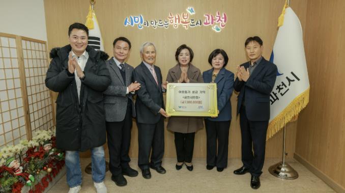 성금 전달식은 이날 시청 시장 집무실에서 열렸으며, 신계용 과천시장과 과천시민회 신원수 회장, 강대희 부회장을 비롯한 관계자들이 참석했다.