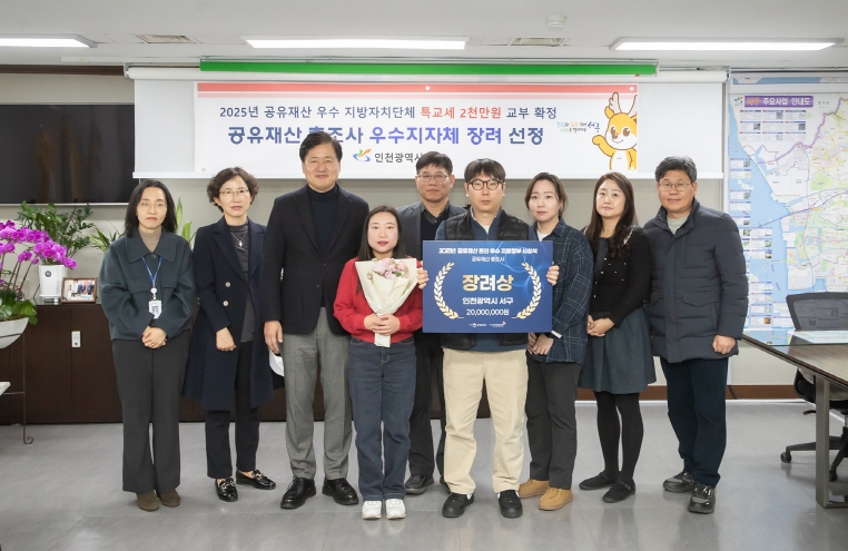 [무한뉴스=정승훈 기자] 인천 서구는 지난 22일 행정안전부 주관으로 정부서울청사에서 열린 ‘2025년 공유재산 우수 지방자치단체’ 시상식에서 공유재산 총조사 부문에서 뛰어난 성과를 거두며 우수 지자체로 선정되어 특별교부세 2천만 원을 교부받을 예정이다.