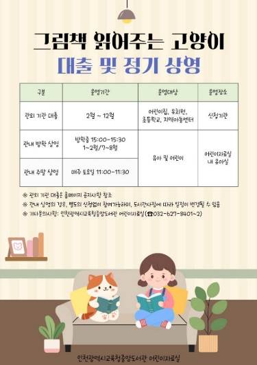 [무한뉴스=정승훈 기자] 인천광역시교육청중앙도서관은 그림책 스트리밍 서비스'그림책 읽어주는 고양이'를 2월부터 관내 희망 기관에 대출한다
