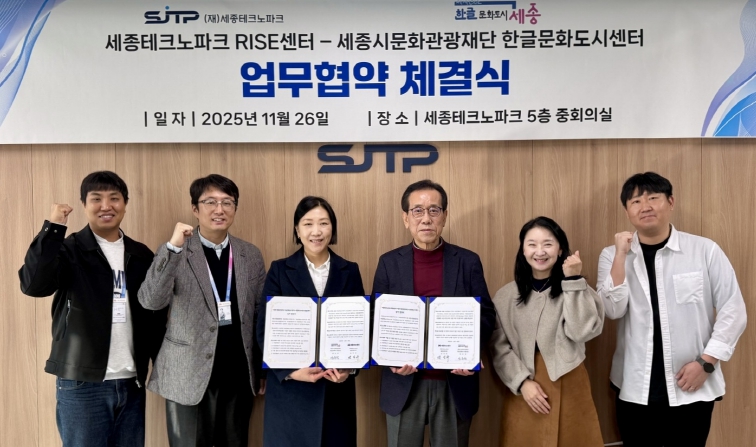 [무한뉴스=정민정 기자] 세종시문화관광재단 한글문화도시센터(센터장 양유정)와 세종테크노파크 RISE센터(센터장 윤석무)가 ‘한글문화도시 세종’ 조성과 지역혁신 역량 강화를 위한 협력에 나섰다.