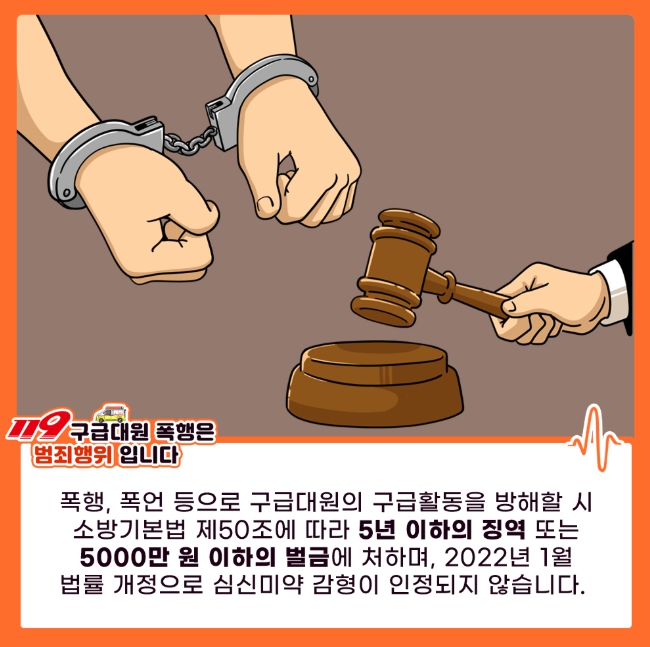 현행 법령에서는 출동 중인 구급대원에 대한 폭행이나 협박 행위를 처벌 대상으로 규정하고 있다. 서산소방서는 시민들이 관련 법령과 기준을 이해할 수 있도록 제도 안내와 함께 예방 홍보를 병행하고 있다.