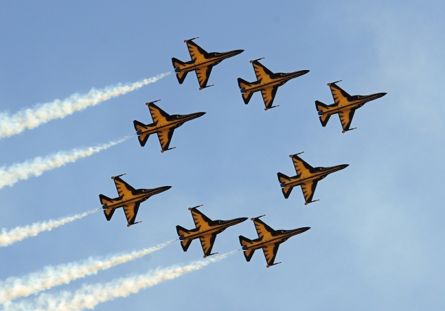 블랙이글스 에어쇼는 계룡軍문화축제의 대표 인기 프로그램 중 하나로, 매년 수많은 관람객의 시선을 사로잡는 대한민국 공군의 상징적인 에어 퍼포먼스다.