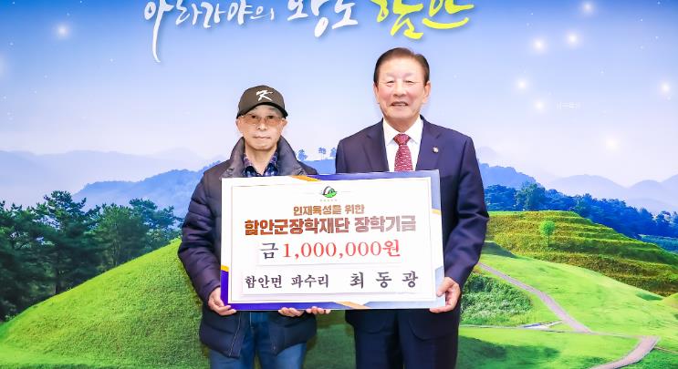 [무한뉴스=최진수 기자] 함안군 함안면 파수리에 거주하는 최동광 씨가 지난 25일 함안군청을 방문해 지역 인재 육성을 위해 장학기금 100만 원을 함안군장학재단에 기탁했다.