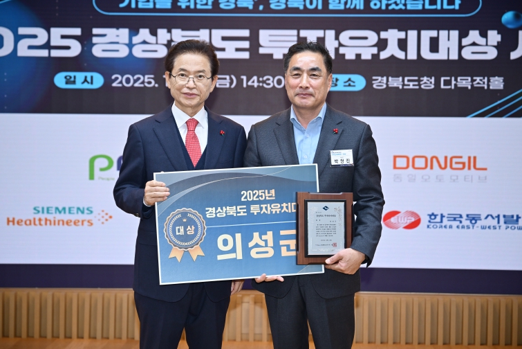 [무한뉴스=최진수 기자] 의성군은 지난 19일 경북도청에서 열린 ‘2025년 경상북도 투자유치대상’ 시상식에서 투자유치 활성화 성과를 인정받아 3년 연속 대상을 수상했다고 밝혔다.