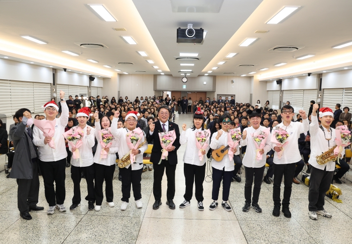 공연은 크리스마스 캐럴과 팝송 등 총 4곡으로 구성됐으며, 참석자들은 따뜻한 박수와 환호로 화답했다.