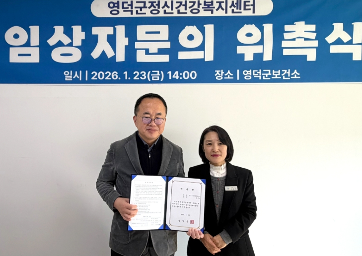 [무한뉴스=최진수 기자] 영덕군보건소 정신건강복지센터는 군민의 정신건강을 증진하기 위해 지난 23일 김홍관 정신과 전문의를 임상 자문의로 위촉했다.