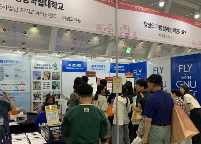 [무한뉴스=최진수 기자] 경상국립대학교 라이즈(RISE)사업 지역교육혁신센터와 평생교육원(원장 김철호 제약공학과 교수)은 10월 17~18일 양일간 창원컨벤션센터(CECO)에서 열린 ‘2025년 제2회 경상남도 평생학습 박람회 · 문해의 달’에 참가해 다양한 체험형 프로그램과 홍보활동을 진행했다고 밝혔다.