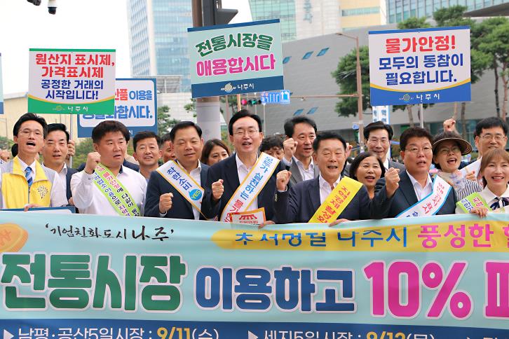 | ▲ 나주시가 오는 22일부터 ‘민생회복 소비쿠폰’ 2차 지급을 시작한다. 사진은 2024년 추석 맞이 지역상권활성화 동참 캠페인 모습. |