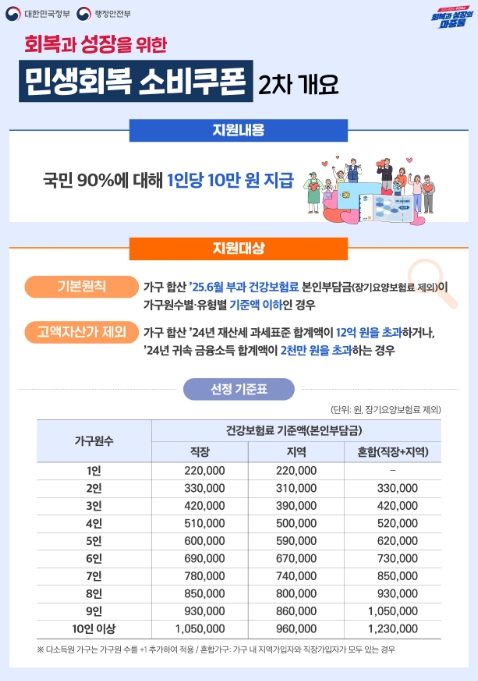 2차 소비쿠폰은 지역 소비 활성화의 흐름을 이어가기 위한 것으로 소득 상위 10%를 제외한 전 시민에게 1인당 10만 원이 지급된다.