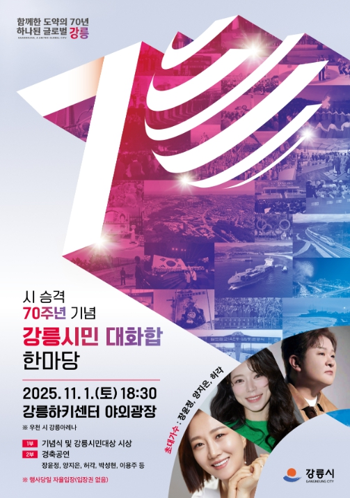 한편, 강릉시는 올해 '함께한 도약의 70년, 하나된 글로벌 강릉'을 슬로건으로 70주년 엠블럼 선정, 포토존 조성, 가로등 배너 및 대중교통 랩핑 홍보 등을 통해 도심 전역에 축하 분위기를 확산했으며,